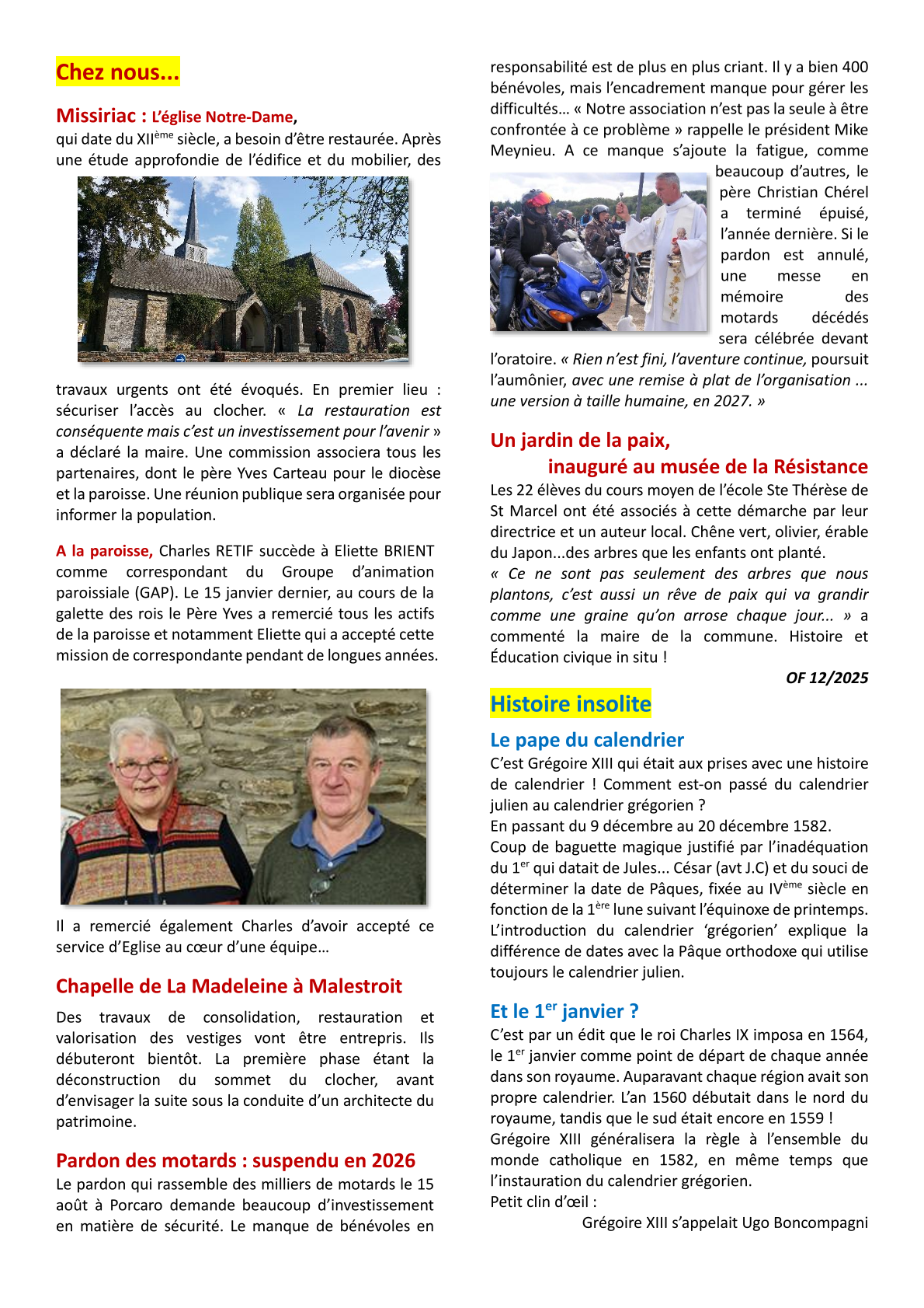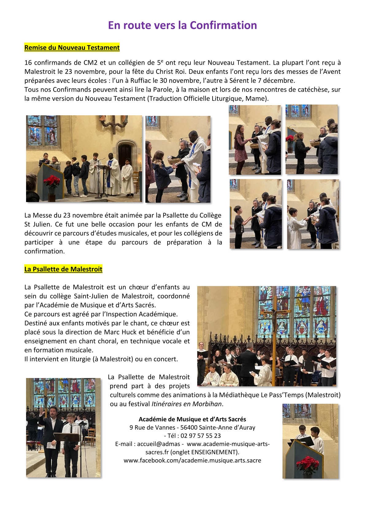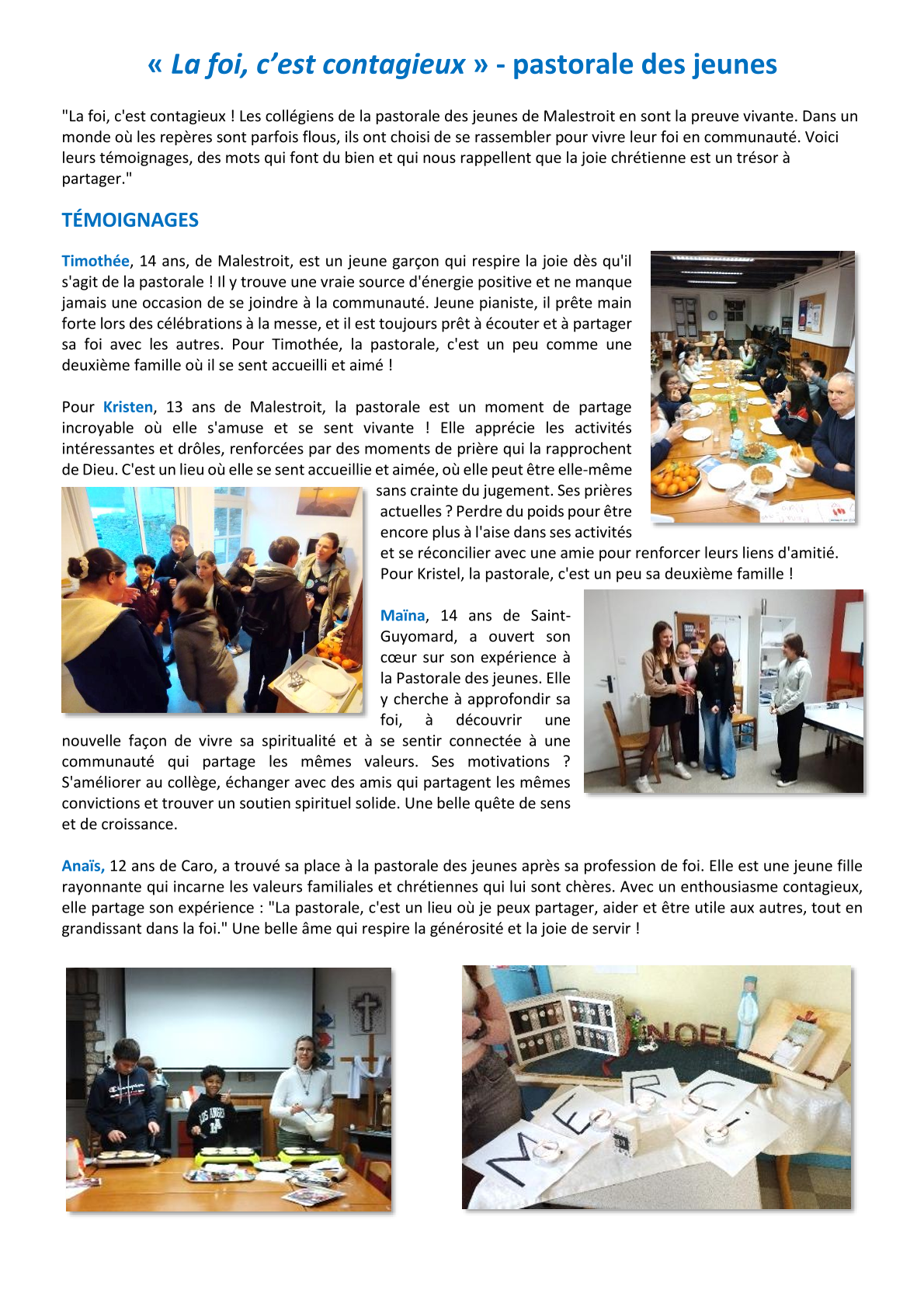 page 2, Agenda 2026 page 3, Editorial: En marche vers Pâques page 4, La Bible: Les Psaumes 1/3 page 5, Repéré dans l'Actu page 6, Repéré dans l'Actu page 7, Repéré dans l'Actu page 8, Les Aînés : Thérèse page 9, Saint Barnabé page 10, Evénements paroissiaux page 11, Dis-moi comment tu pries page 12, Le Vitrail du Rosaire page 13, Visite de notre évêque page 14, La Catéchèse page 15, Les messes en Avent page 16, Vivre le temps de l'Avent page 17, Les célébrations page 18, En route vers la Confirmation page 19, La foi, c'est contagieux page 20, Informations pastorales