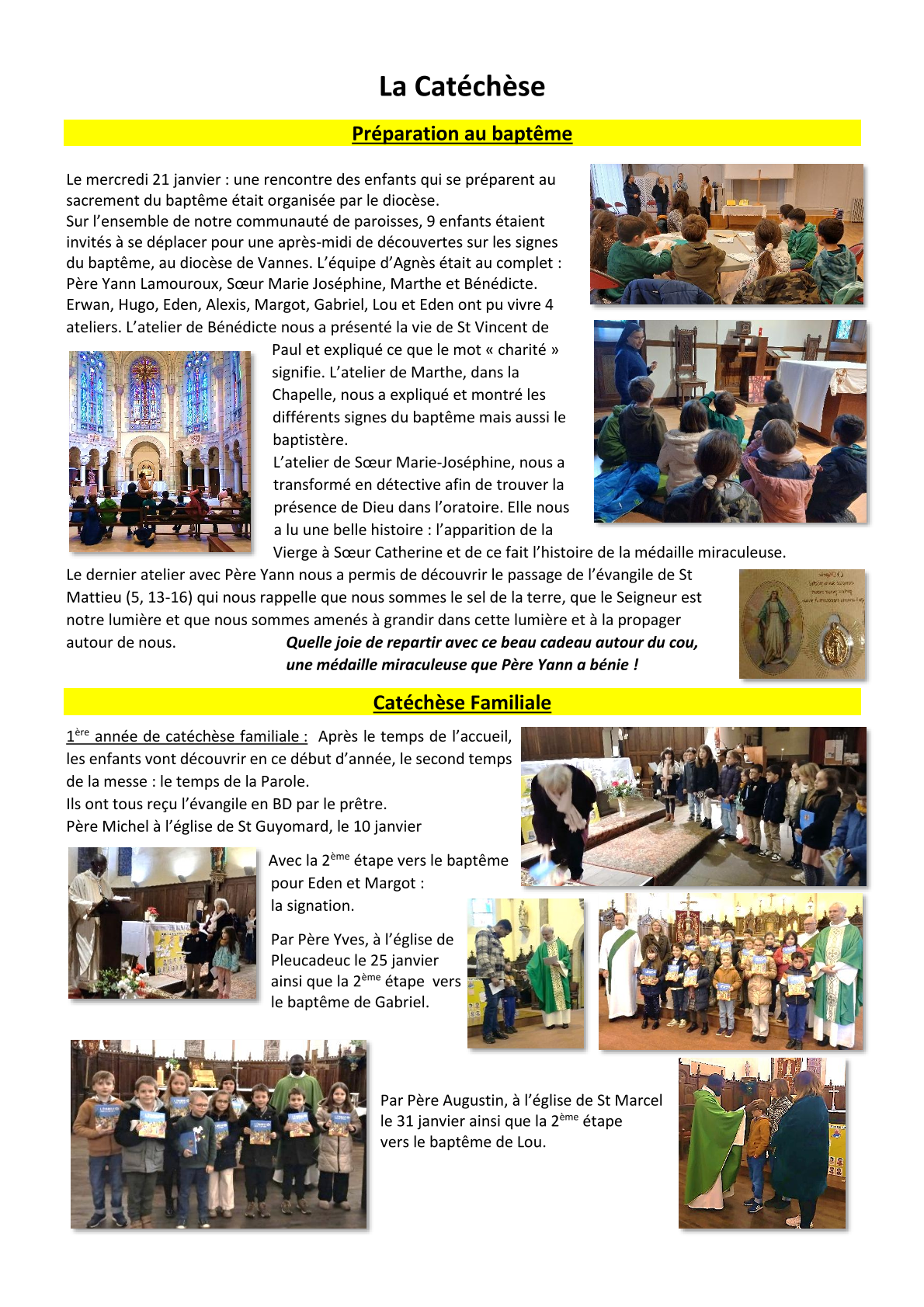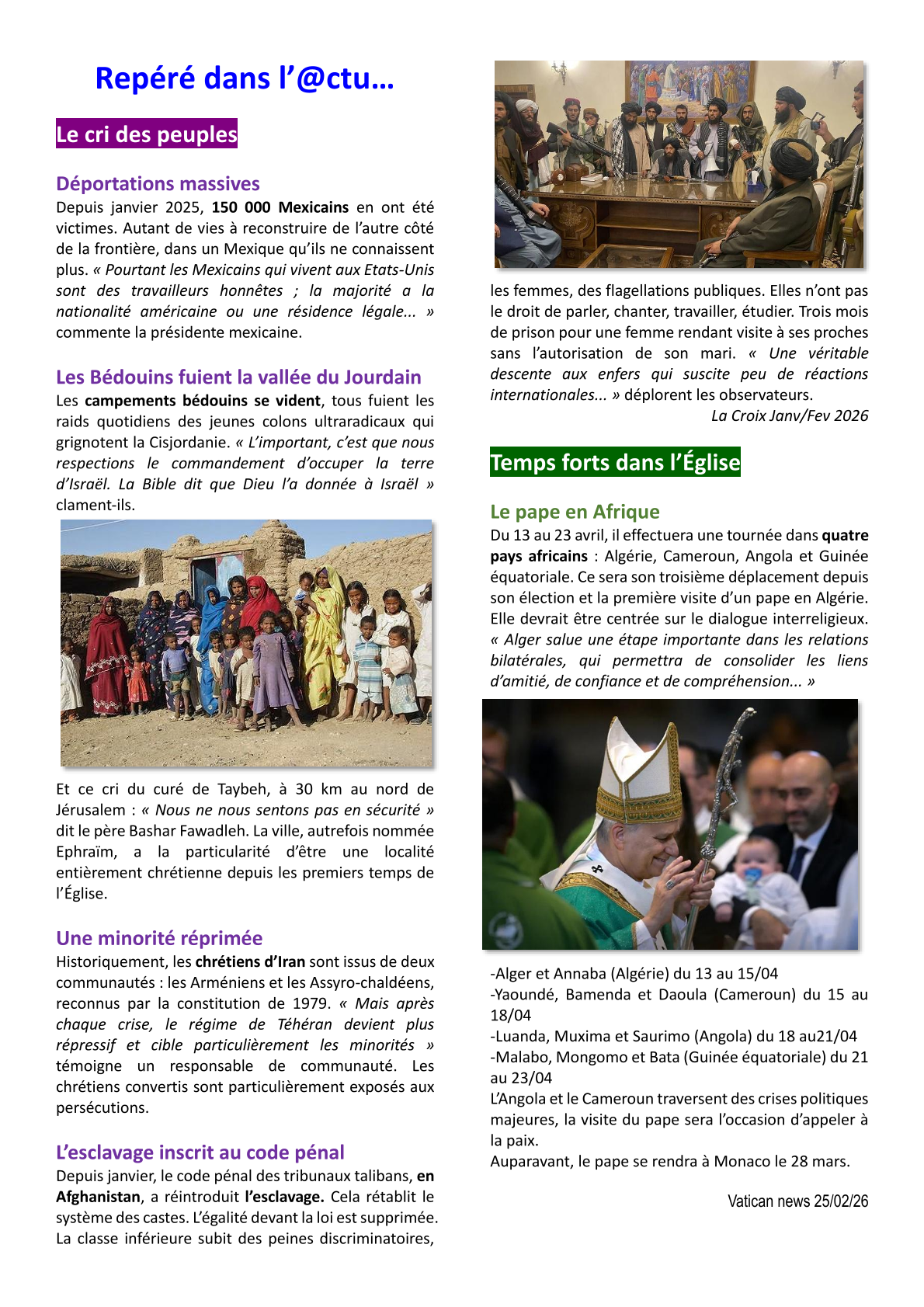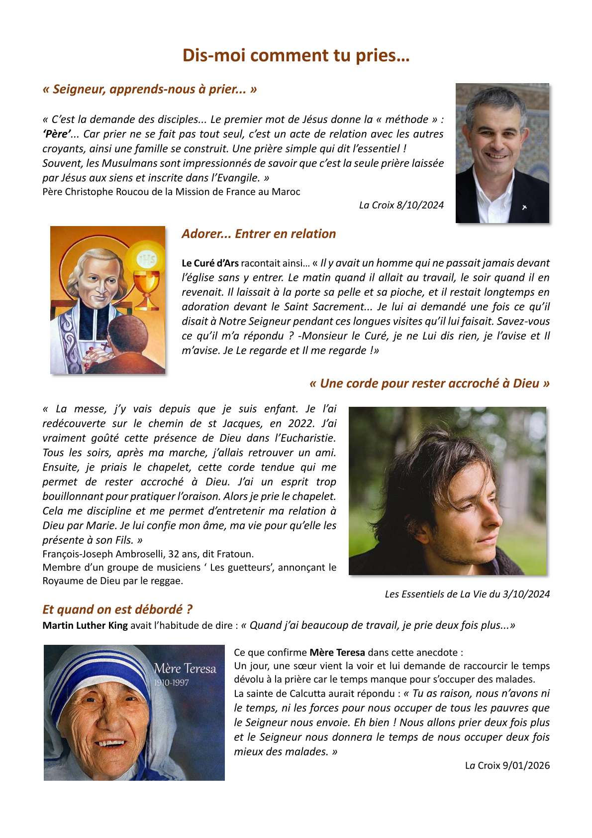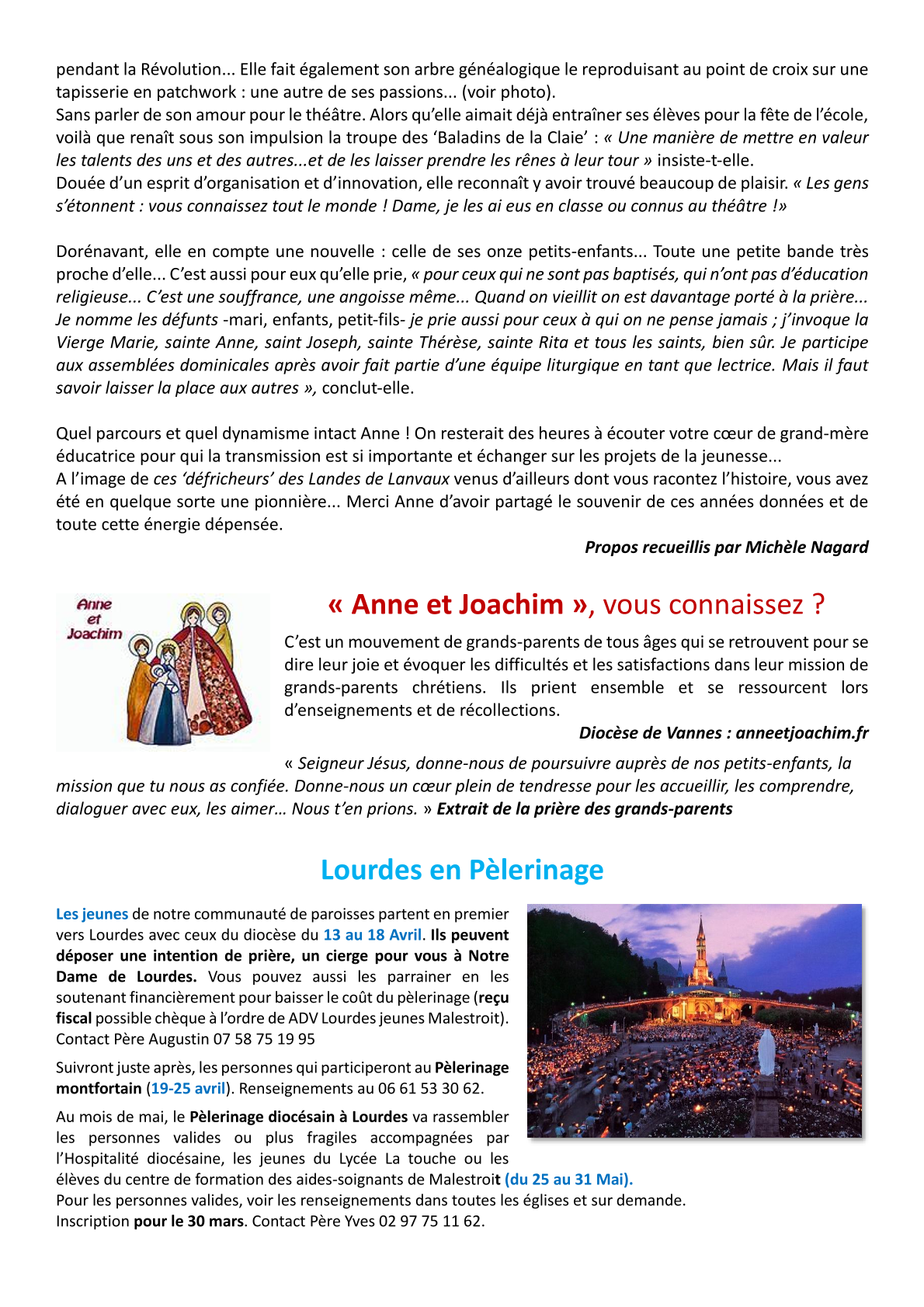 page 2, Agenda 2026 page 3, Editorial: La Résurrection page 4, La Bible: Les Psaumes 2/3 page 5, Repéré dans l'Actu page 6, Repéré dans l'Actu page 7, Repéré dans l'Actu page 8, Evénements paroissiaux page 9, Les Aînés : Anne page 10, Les Aînés : Anne page 11, Dis-moi comment tu pries page 12, Le Vitrail du Rosaire page 13, Le Vitrail du Rosaire page 14, Visite de Mgr Centène page 15, Catéchèse avec les enfants page 16, Catéchèse avec les enfants page 17, L'Esprit saint : la Colombe page 18, Les confirmands page 19, Les confirmands page 20, Informations pastorales