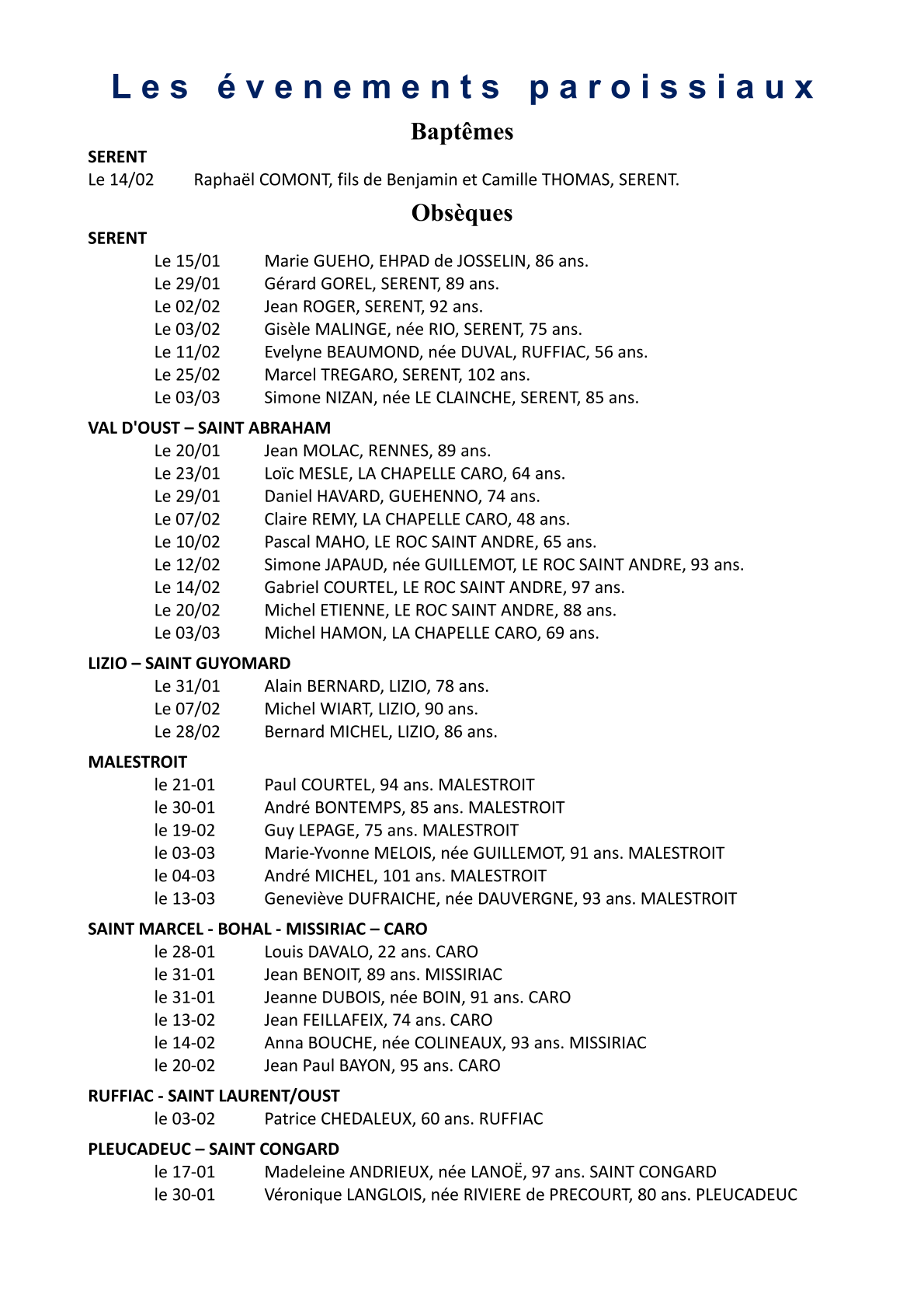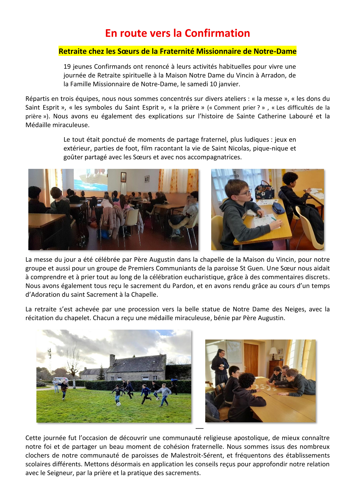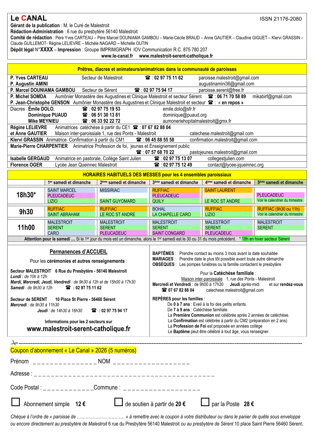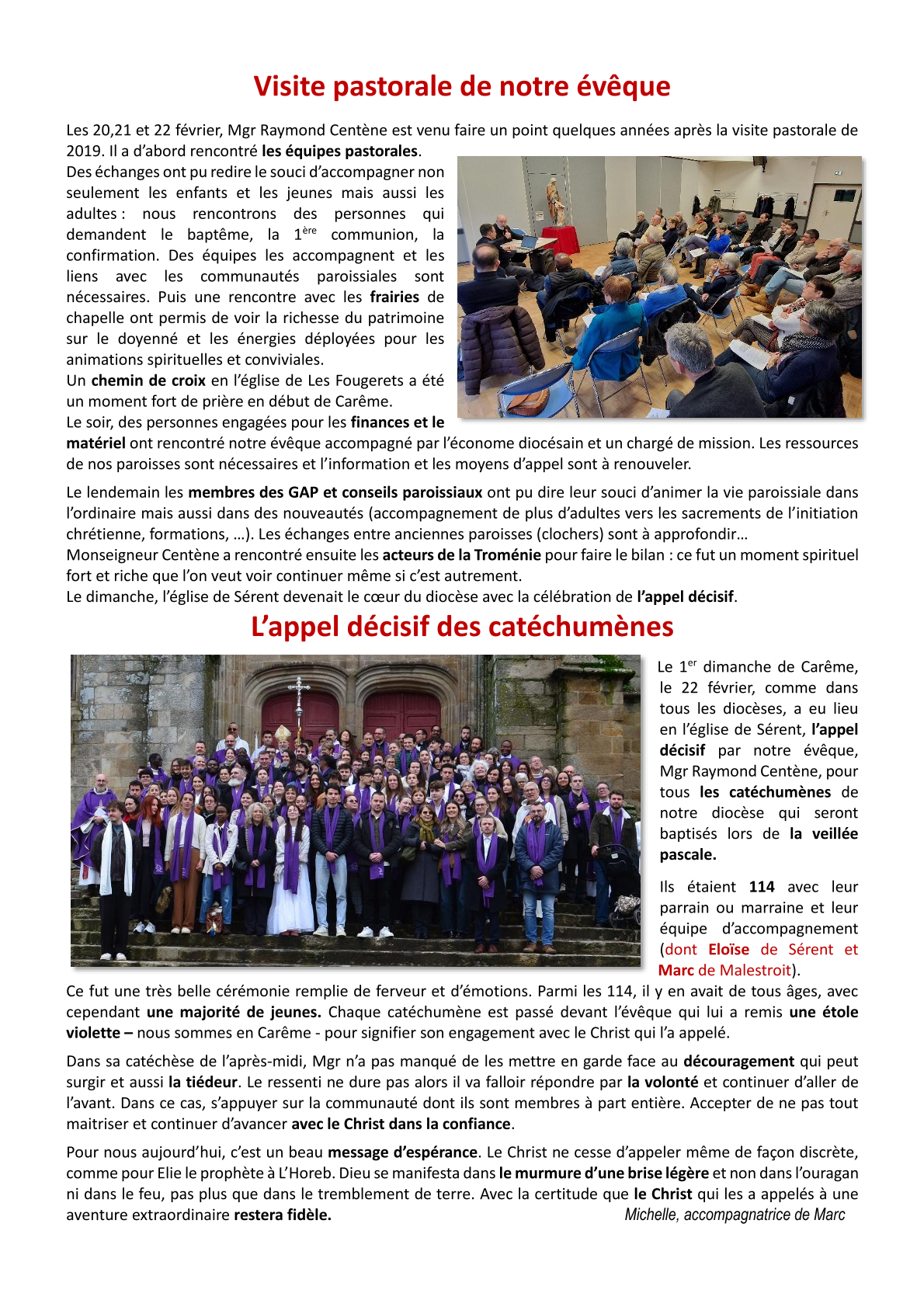 page 2, Agenda 2026 page 3, Editorial: La Résurrection page 4, La Bible: Les Psaumes 2/3 page 5, Repéré dans l'Actu page 6, Repéré dans l'Actu page 7, Repéré dans l'Actu page 8, Evénements paroissiaux page 9, Les Aînés : Anne page 10, Les Aînés : Anne page 11, Dis-moi comment tu pries page 12, Le Vitrail du Rosaire page 13, Le Vitrail du Rosaire page 14, Visite de Mgr Centène page 15, Catéchèse avec les enfants page 16, Catéchèse avec les enfants page 17, L'Esprit saint : la Colombe page 18, Les confirmands page 19, Les confirmands page 20, Informations pastorales