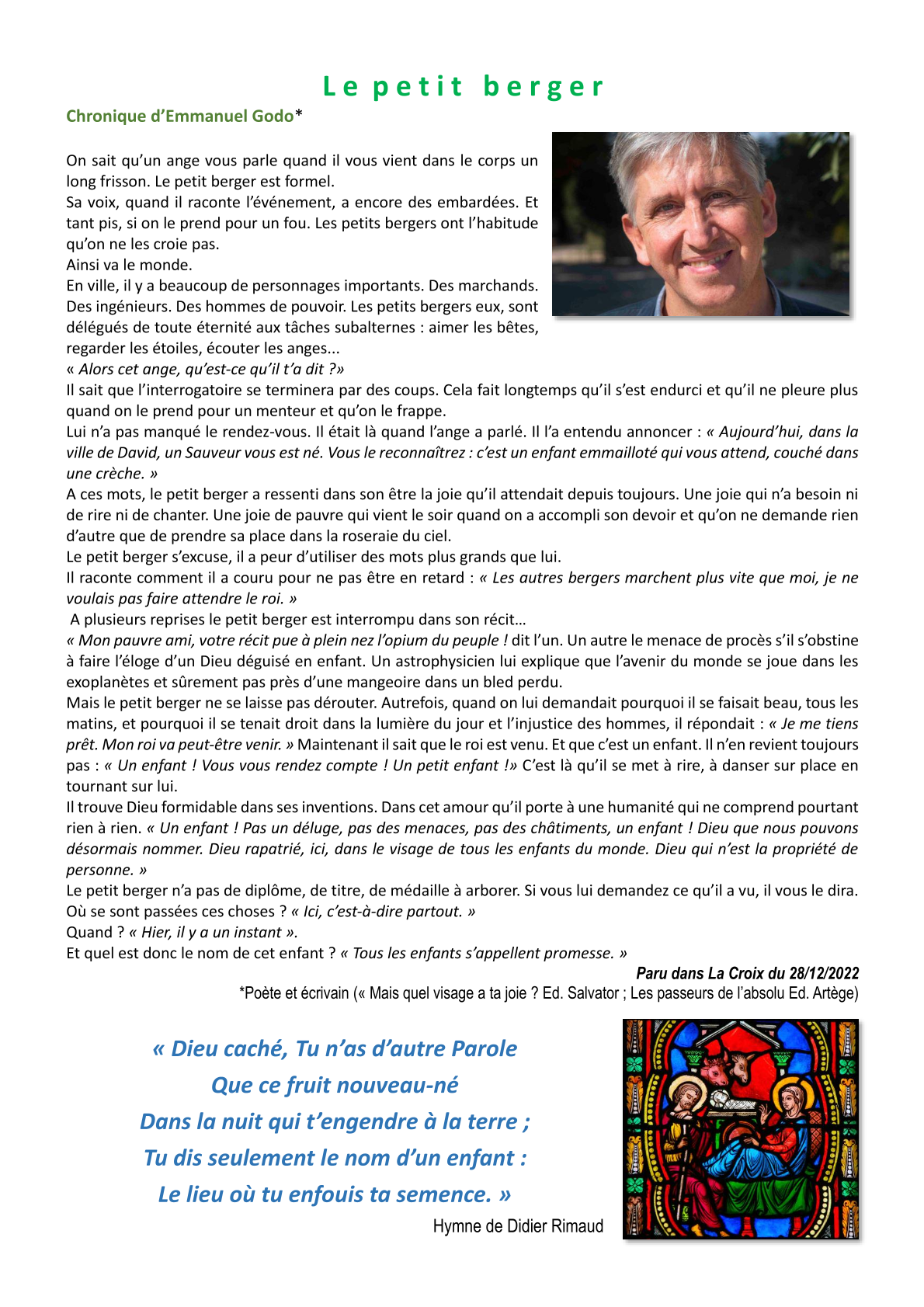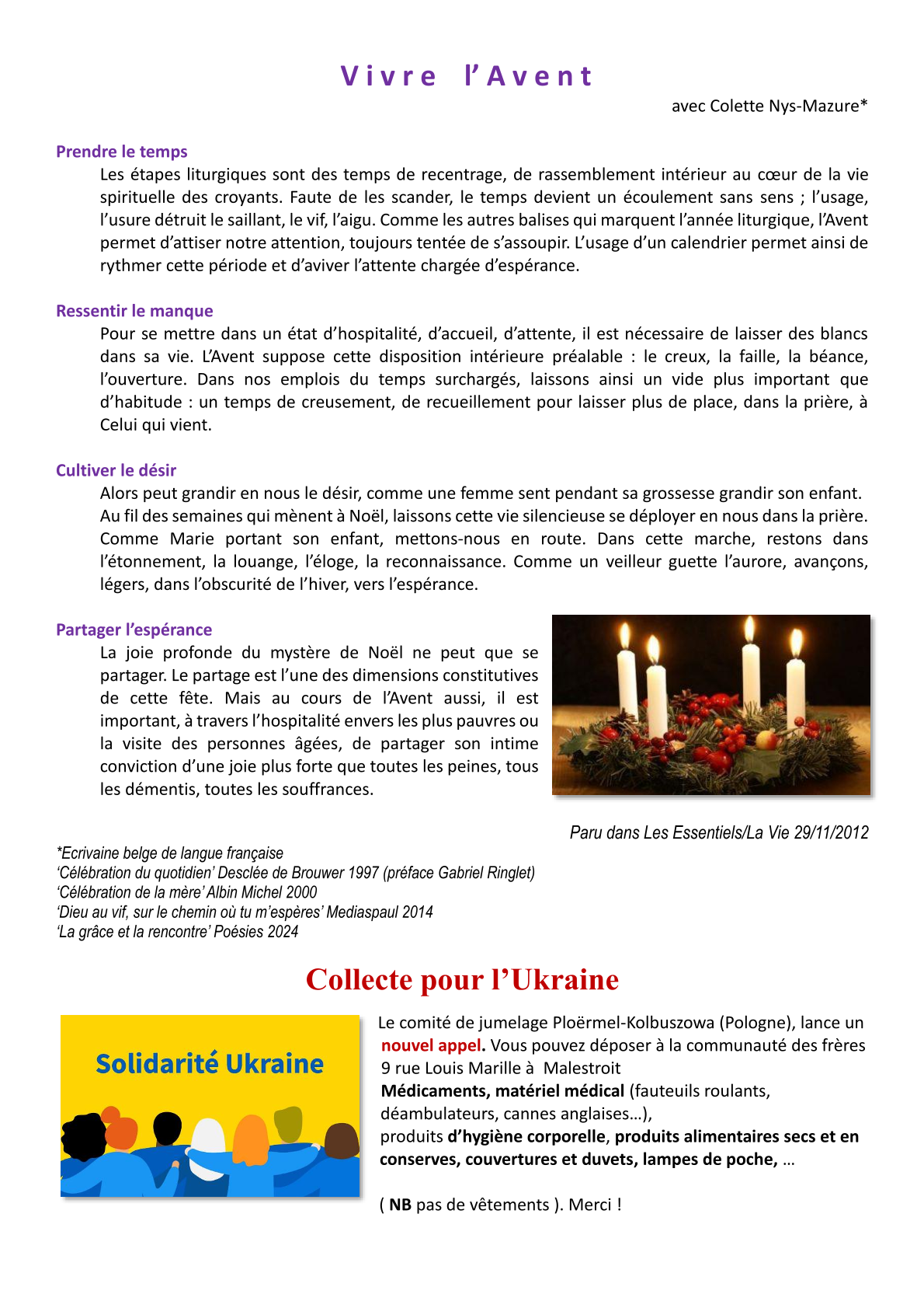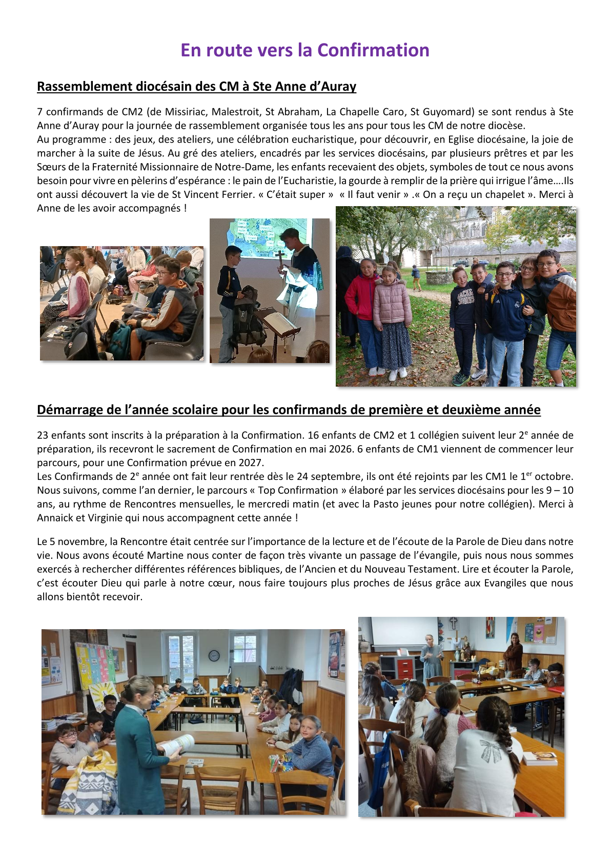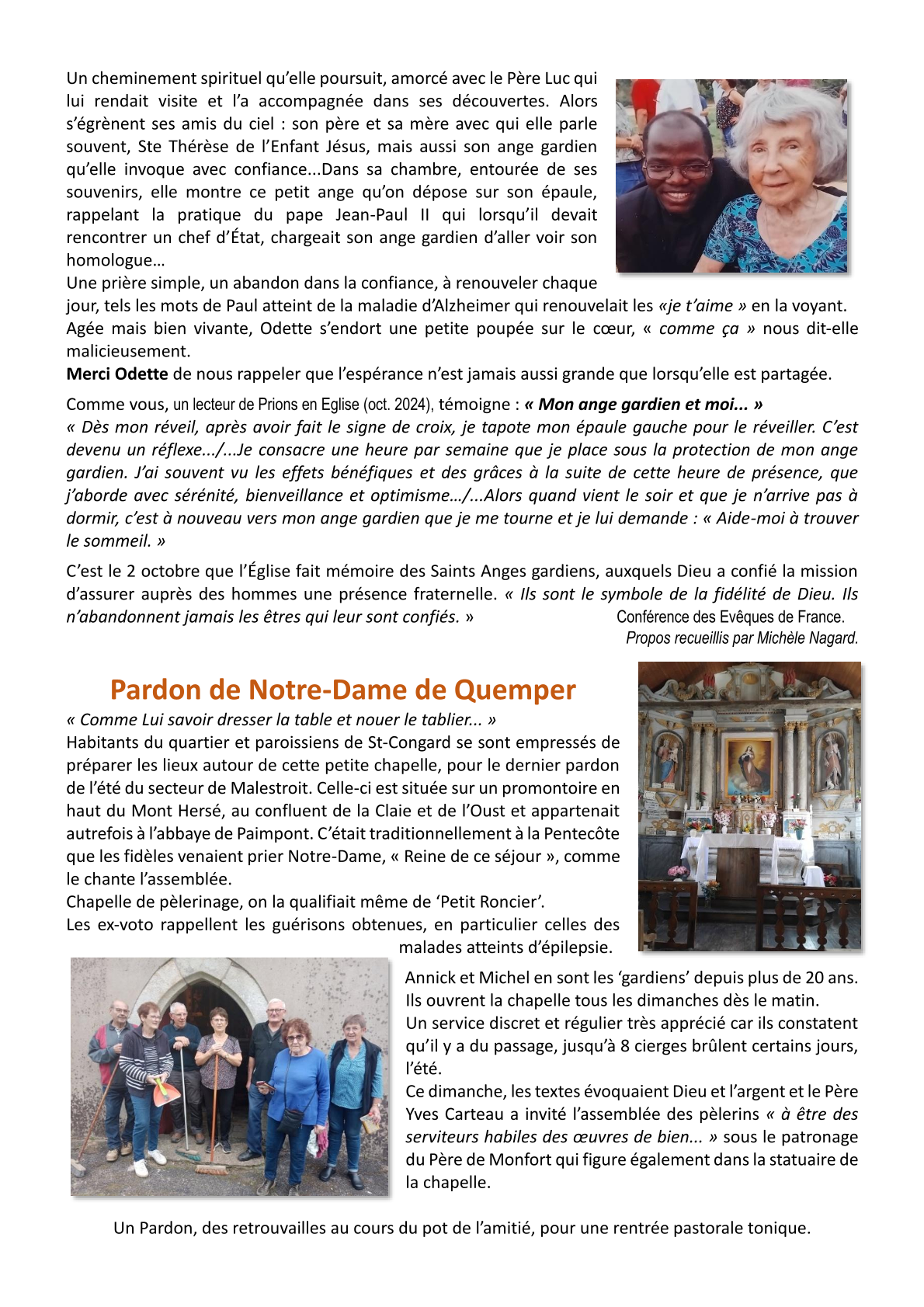 page 2, Agenda 2026 page 3, Editorial: l'Avent page 4, La Bible: Le livre de Job page 5, Repéré dans l'Actu page 6, Repéré dans l'Actu page 7, Repéré dans l'Actu page 8, Le Pape Léon XIV page 9, Dilexi te page 10, Evénements paroissiaux page 11, Evénements paroissiaux page 12, Le Vitrail du Rosaire page 13, Le Vitrail du Rosaire page 14, Le Aînés : Odette page 15, Le Pardon de Quemper page 16, Vivre le temps de l'Avent page 17, Conte : le petit berger page 18, Jubilé des catéchistes page 19, Catéchèse des enfants page 20, Prier en temps de Jubilé page 21, Pasto Jeunes : la Confirmation page 22, Le temps de l'Avent page 23, Les horaires de Noël page 24, Informations pastorales